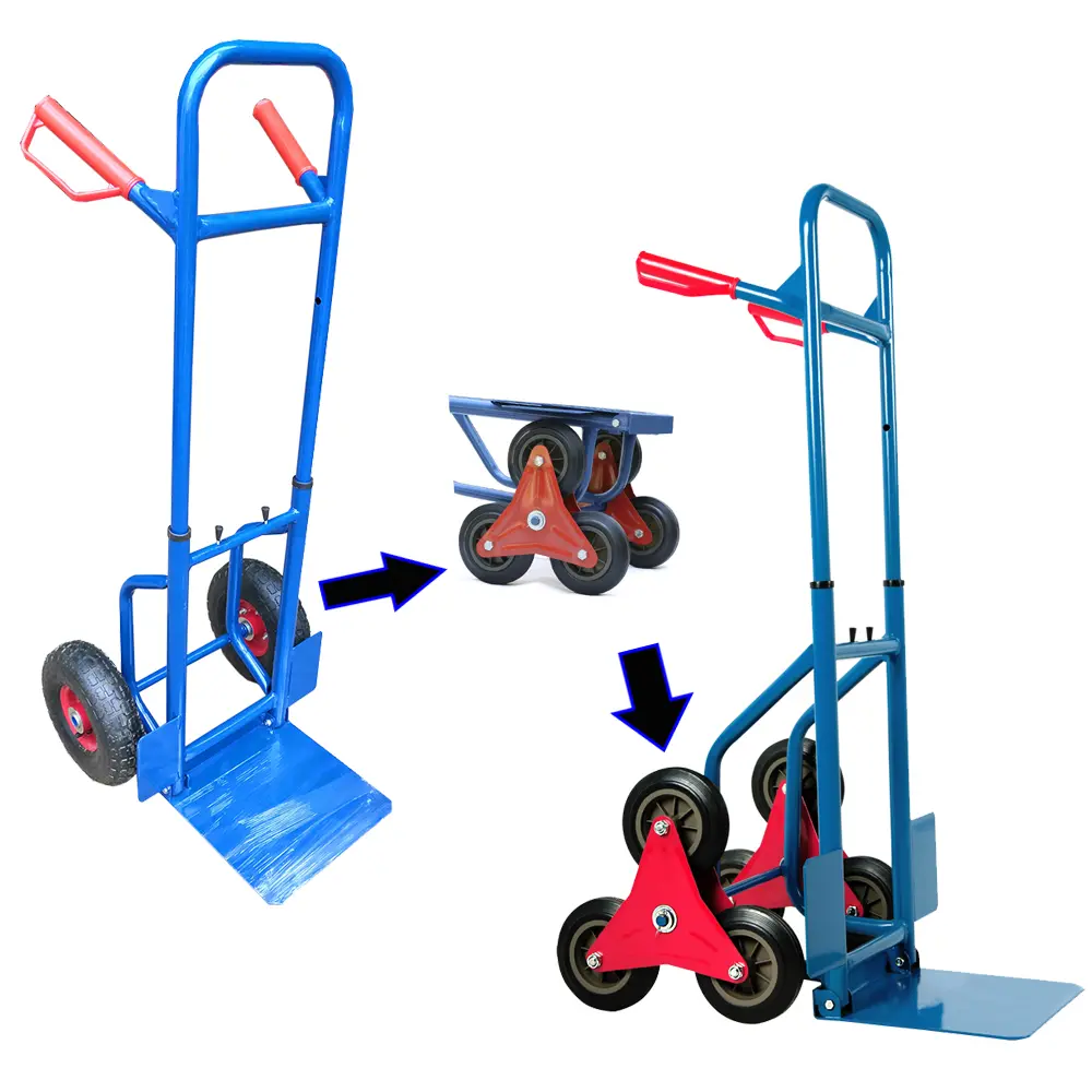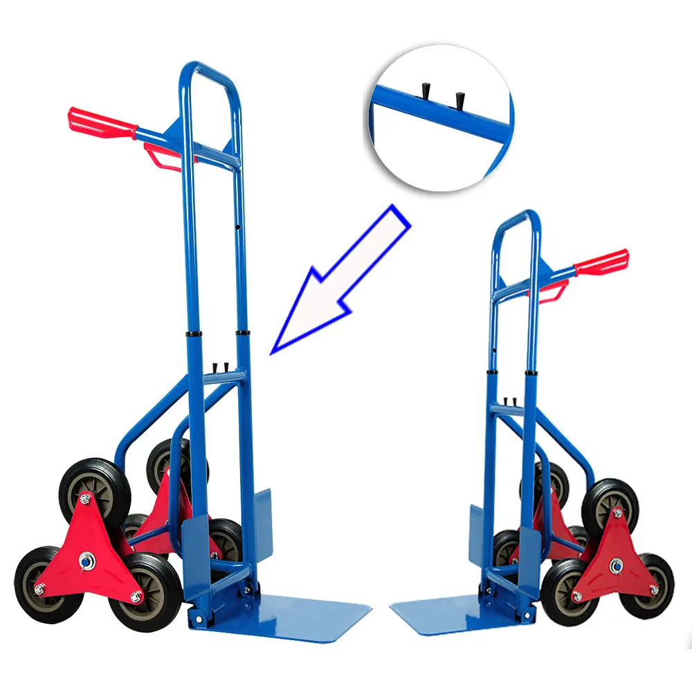 ·Detailed explanation: The unique “dual-mode wheelset” design is the core highlight. Using two atmospheric tires on a flat road surface provides a light and agile driving experience, good shock absorption, and effortless protection of goods. When encountering obstacles such as stairs and slopes, switch to a six wheel climbing wheel, using the principle of three wheels rolling and climbing stairs to smoothly “roll” heavy objects up, completely bidding farewell to the laborious and dangerous traditional handcart “lifting, carrying, and carrying”, greatly expanding the usage scenarios.